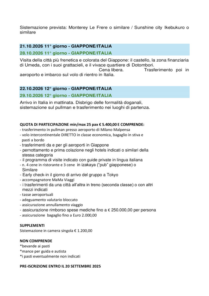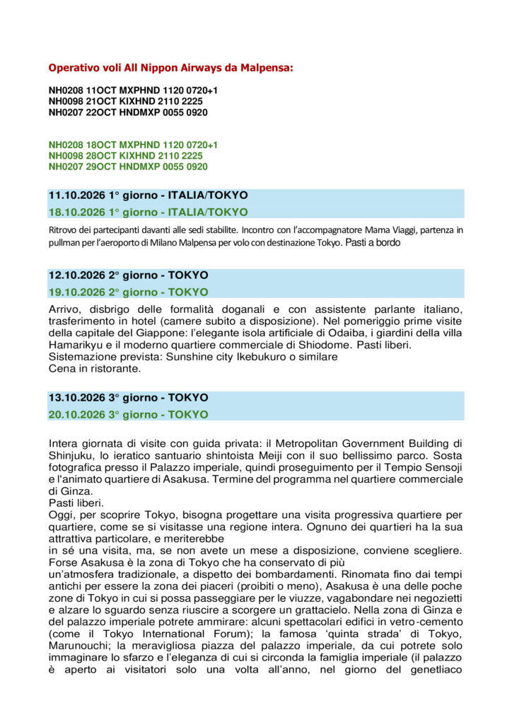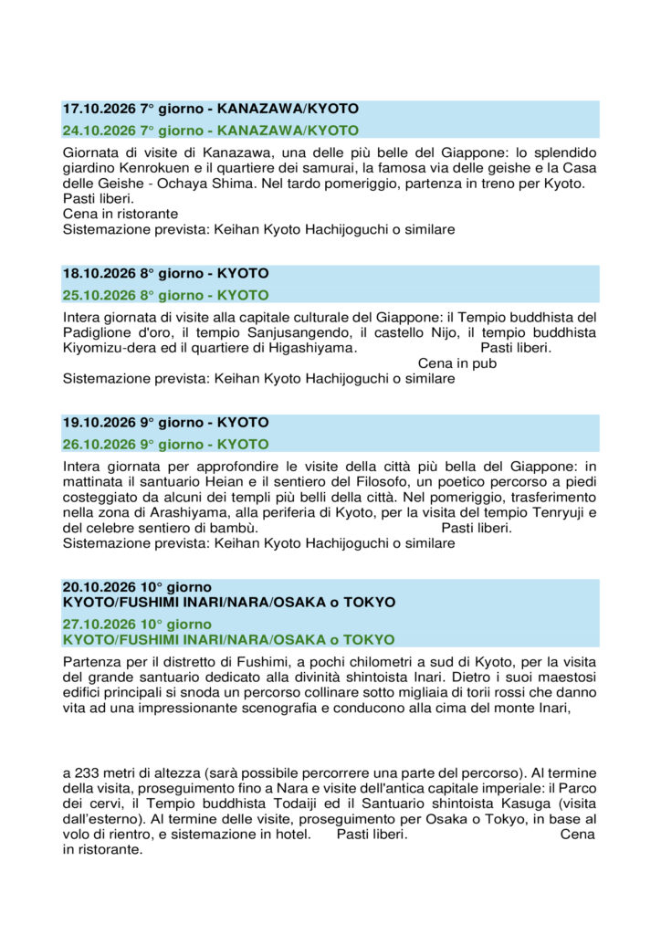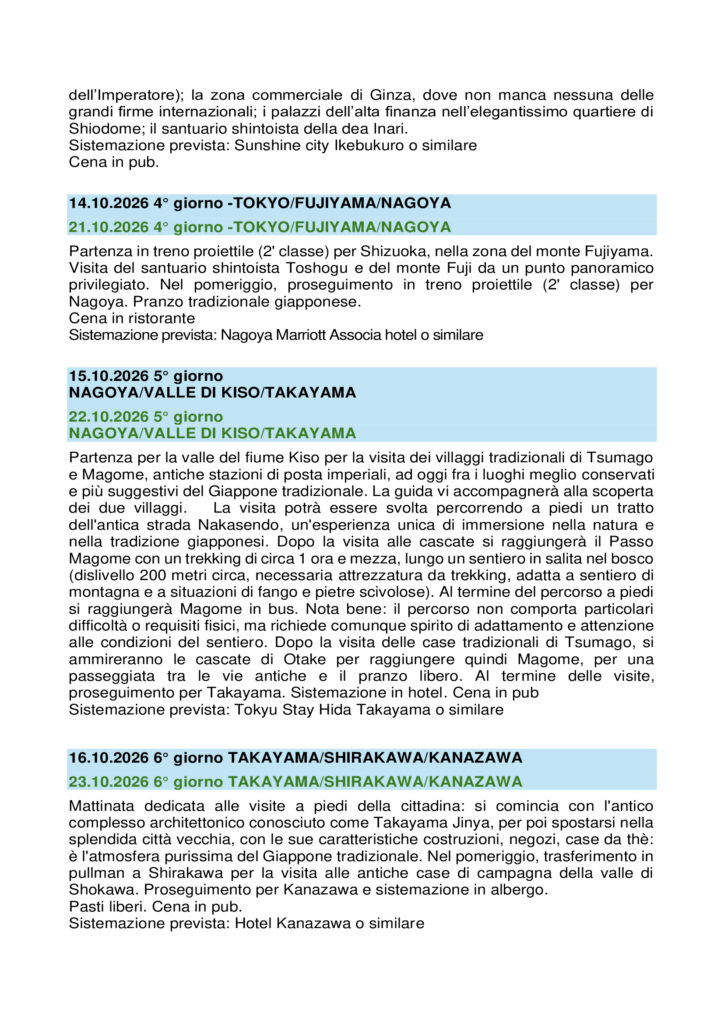 11/22 OTTOBRE – 18/29 OTTOBRE 2026